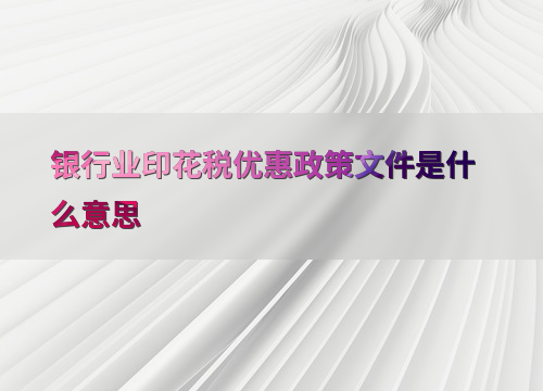 银行业印花税优惠政策文件是什么意思