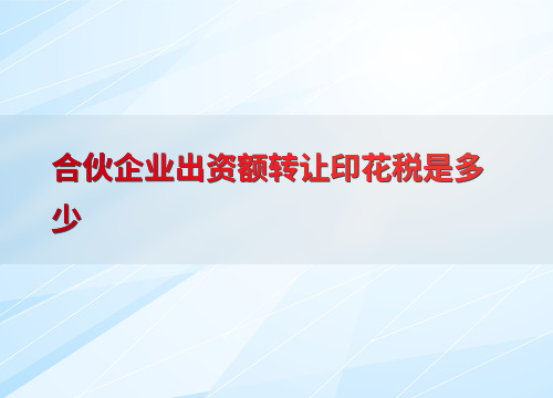 根据《中华人民共和国印花税暂行条例》及其实施细则的规定,产权转移书据的印花税税率为万分之五(0.05%)。这意味着,当合伙企业的合伙人将其出资额转让给其他合伙人或第三方时,需要按照转让金额的0.05%计算并缴纳印花税。例如,若某合伙企业的合伙人将出资额以100万元的价格转让,则应缴纳的印花税为: