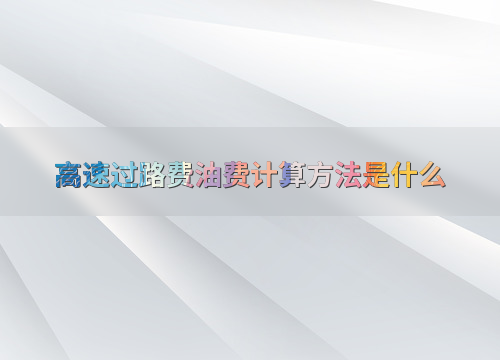 高速过路费油费计算方法是什么