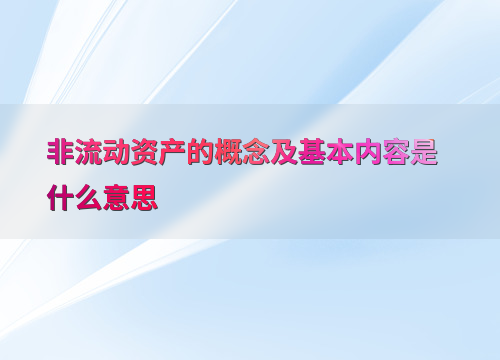 非流动资产的概念及基本内容是什么意思