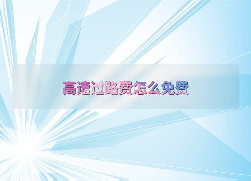 高速过路费怎么免费
