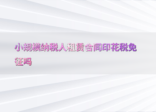 在当前的税收政策下,小规模纳税人在签订租赁合同时是否需要缴纳印花税是一个备受关注的问题。