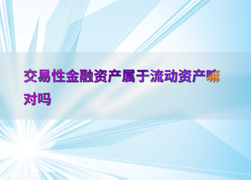 这是因为这些资产可以在短期内通过市场交易迅速转换为现金,满足企业的短期资金需求。例如,企业购买了某公司的股票,如果市场价格上涨,企业可以选择立即卖出,从而获得投资收益。这种快速变现的能力使得交易性金融资产被归类为流动资产。流动资产是指那些在一年内或一个营业周期内可以转化为现金或其他形式的资产。因此,从会计分类的角度来看,交易性金融资产确实属于流动资产。