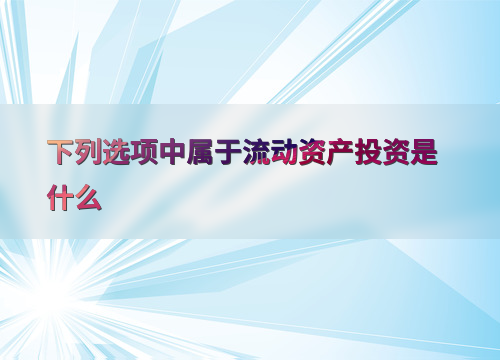在财务管理中,流动资产投资是指企业用于短期运营的资金投入。