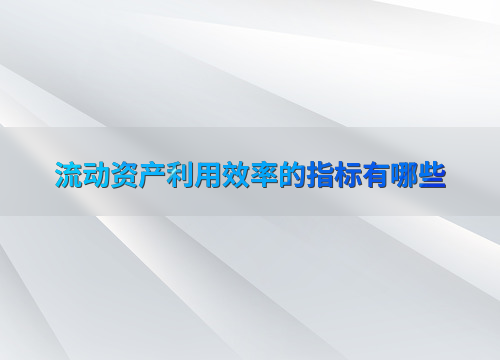 流动资产利用效率的指标有哪些