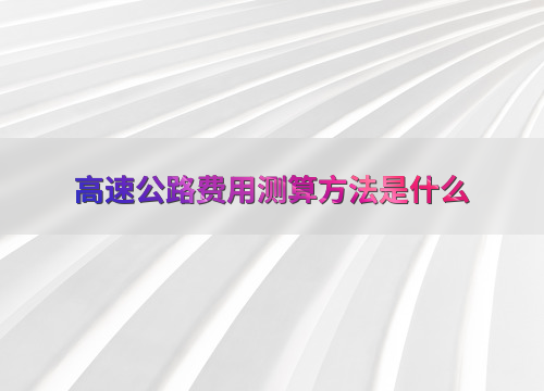 高速公路费用测算方法是什么