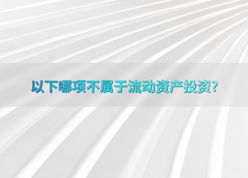 在财务管理中,流动资产投资是指企业在短期内可以转换为现金或用于日常运营的资金。