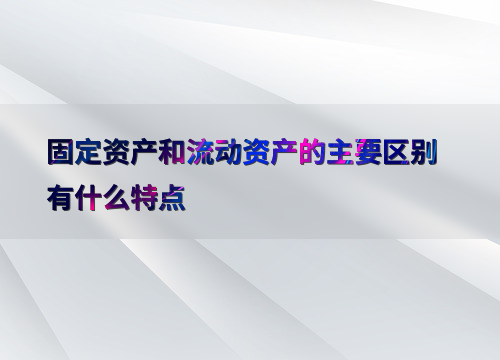 固定资产和流动资产的主要区别有什么特点