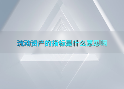 流动资产的指标是什么意思啊