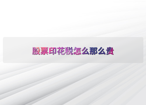 股票印花税怎么那么贵