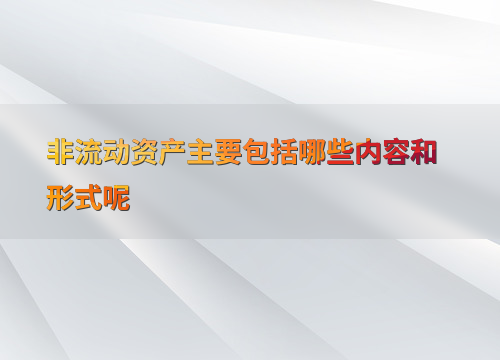 在财务会计中,非流动资产是指那些预计在一个营业周期以上(通常超过一年)不会转换为现金或消耗的资产。
