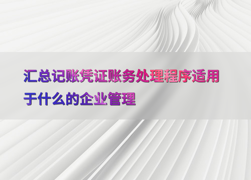 汇总记账凭证账务处理程序适用于什么的企业管理