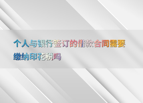 根据《中华人民共和国印花税暂行条例》,借款合同属于应税合同之一,但具体到个人借款合同,情况有所不同。一般来说,个人与银行之间的借款合同,如住房贷款、消费贷款等,通常不需要缴纳印花税。这是因为这些合同主要涉及的是个人生活消费,并非商业经营活动。