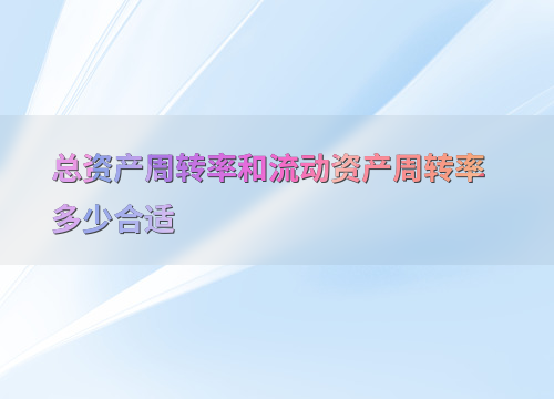 总资产周转率和流动资产周转率多少合适