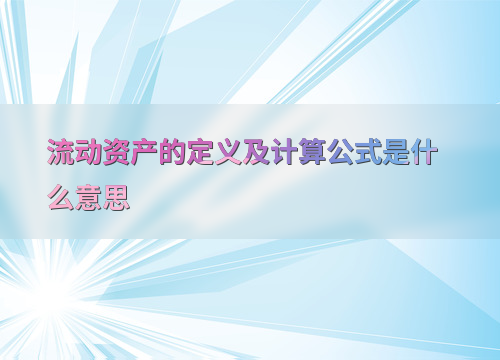 流动资产的定义及计算公式是什么意思