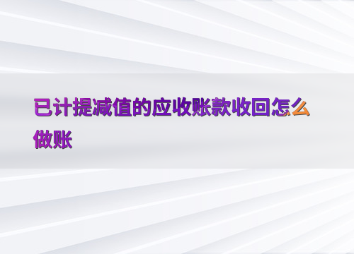已计提减值的应收账款收回怎么做账