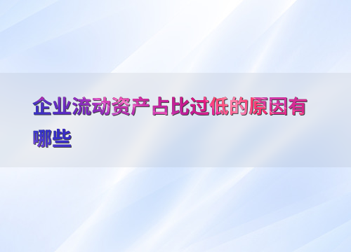 企业流动资产占比过低的原因有哪些