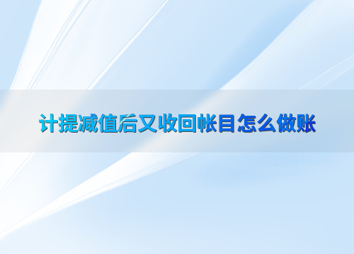 计提减值后又收回帐目怎么做账