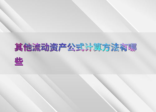具体来说,其他流动资产包括预付款项、待摊费用、短期投资以及其他临时性资产。为了准确计算这些资产的价值,企业需要采用特定的公式和方法。