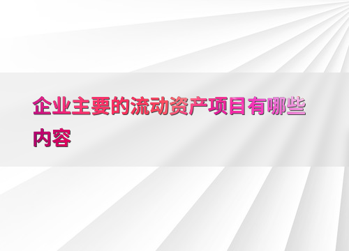 企业主要的流动资产项目有哪些内容