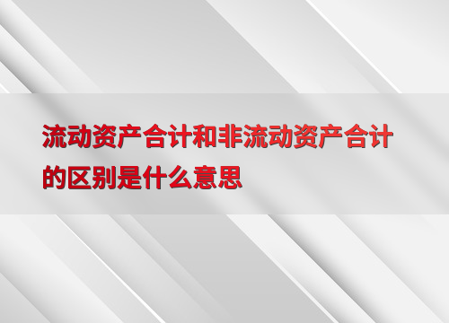 流动资产合计和非流动资产合计的区别是什么意思