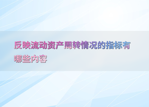 反映流动资产周转情况的指标有哪些内容
