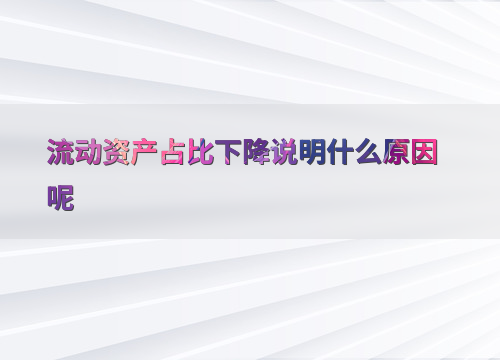 如何判断流动资产占比下降是否合理?答:判断流动资产占比下降是否合理,可以通过比较同行业的平均值和历史数据。如果企业的流动比率仍然保持在健康水平,并且有足够的现金流支持日常运营,则可以认为这种变化是合理的。
