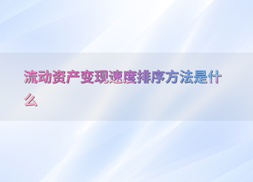 流动资产变现速度排序方法是什么
