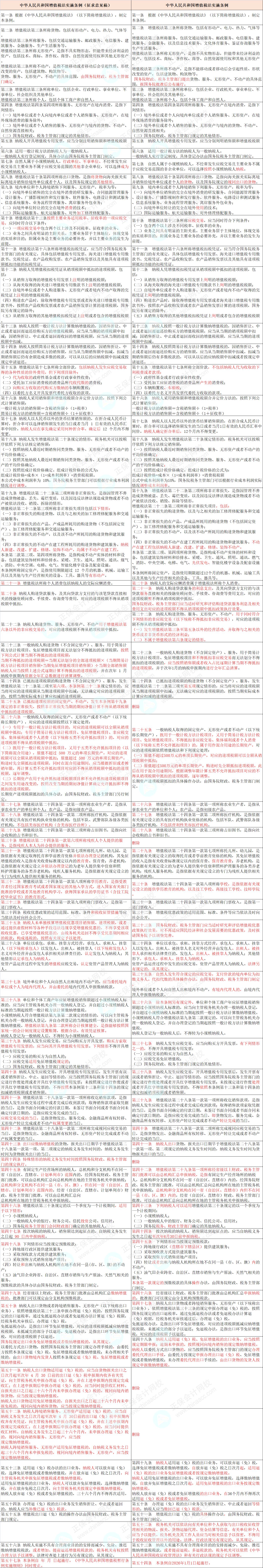 中华人民共和国增值税法实施条例(征求意见稿)与中华人民共和国增值税法实施条例有哪些调整?一起来看对比!