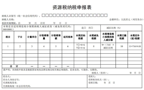 二、纳税人申报资源税时,应当填报《资源税纳税申报表》。