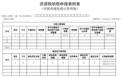 此表反映资源税申报计算明细和减免税计算明细,并将计算结果自动导入主表。