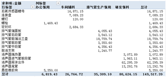 生产成本-直接材料-排气管 35309.10