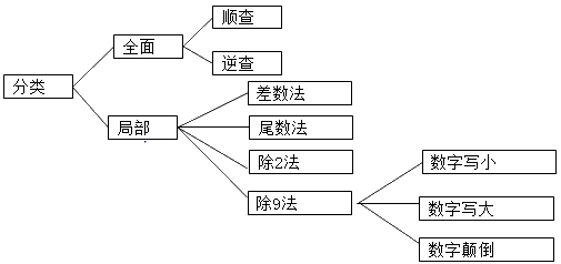 (1)将数字写小。如将300元误记为30元,错误数字小于正确数字9倍。查找的方法是以差数除以9后得出的商即为写错的数字,商乘以10即为正确的数字。