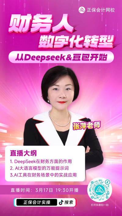 随着科技的不断进步,AI工具在各行各业中的应用越来越广泛,尤其是在财务领域。为了帮助财务人员更好地利用AI工具提高工作效率,张萍老师将在3月17日19:30为大家直播讲解如何利用‘Deepseek&豆包’开启财务人员高效工作新范式!