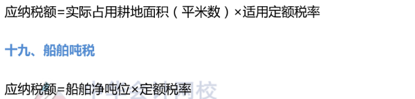 车船税、契税、城镇土地使用税、耕地占用税、船舶吨税