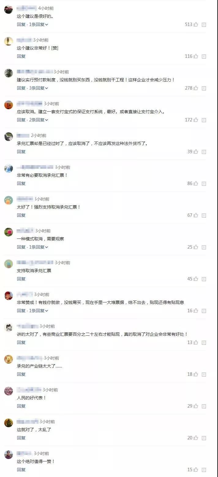 如何取消,刘学敏也在自己提交的建议中给了意见,她说,可分步实施,首先,停止增发新的承兑汇票;其次,对现有流通的汇票持有至到期后不再继续开具。