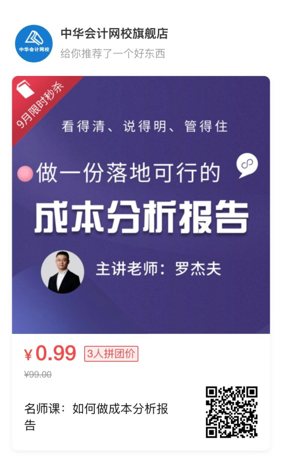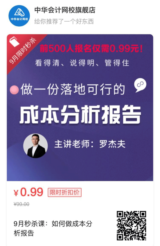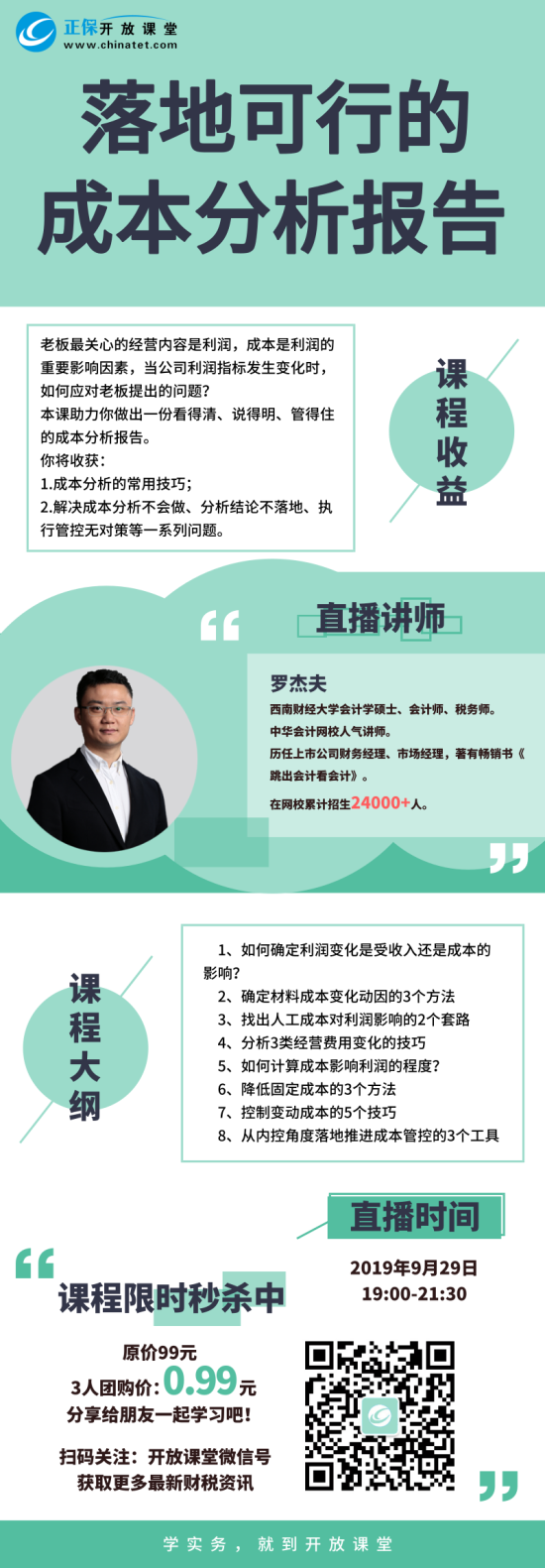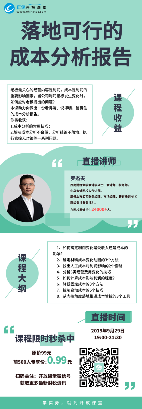 别担心,网校开放课堂的罗杰夫老师用1个半小时的时间,带你《做一份落地可行的成本分析报告》!