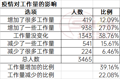 因为疫情,39%的企业财会人员增加了工作量,22%的人减少工作量。