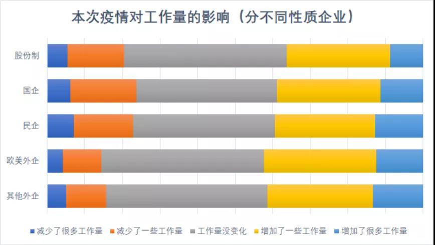 层级越高的人明显越忙碌,相对工作量增加明显。突发事件之下,岗位层级越高的人,承担的压力和责任更大。