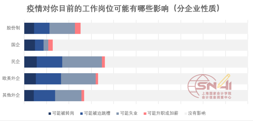 疫情对民企和外企财会人员的影响较大,对国企财会人员的影响最小。