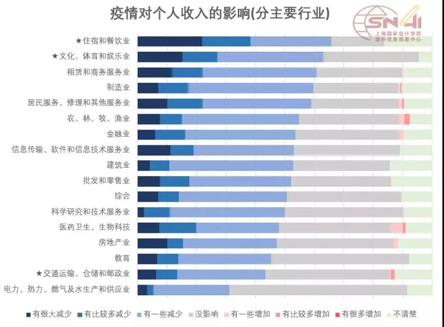 财会人员个人收入预期减少最多的是住宿和餐饮业、其次为文化体育和娱乐业,第三为能源行业。