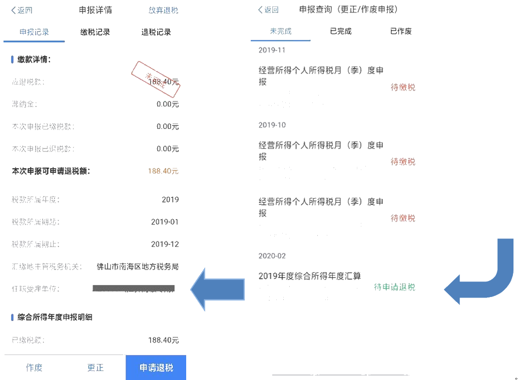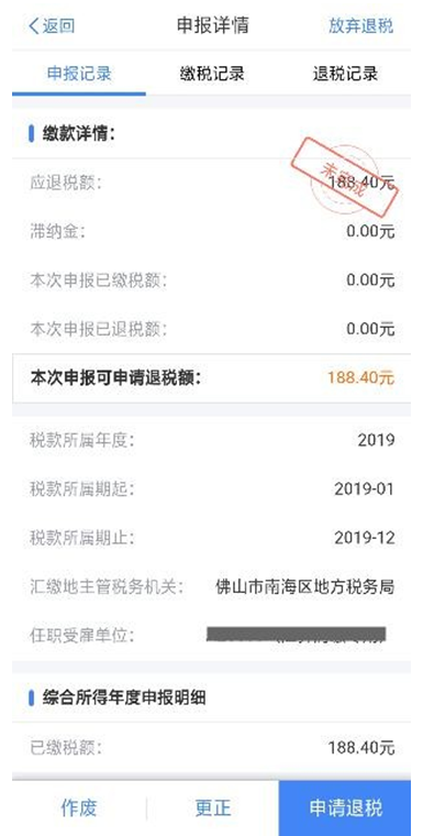 【申报详情】查看已申报情况。若您发现申报有误,可点击【更正】或【作废】。