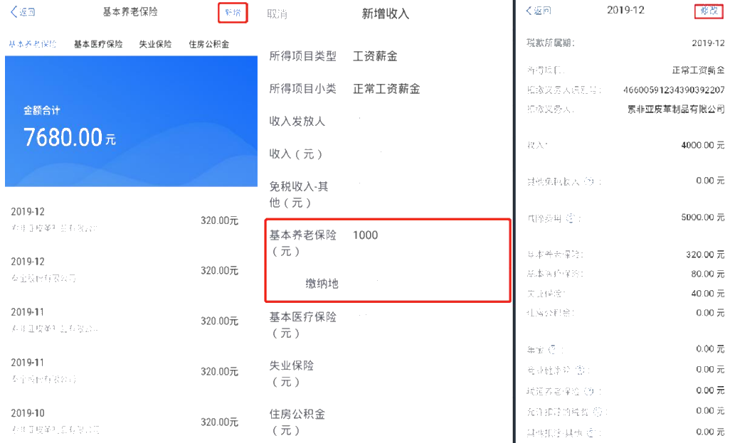 在专项扣除列表界面,您可分项目进行新增和修改。