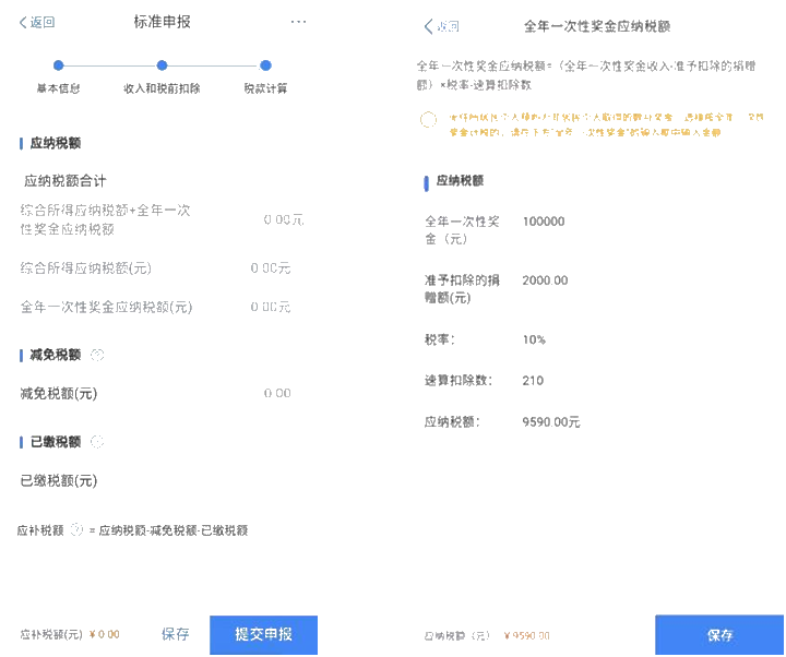 划重点:系统将自动计算按全年一次性奖金计税的应纳税额,您需要将按数月奖金申报的已缴税额,合并进全年已缴税额进行填写。