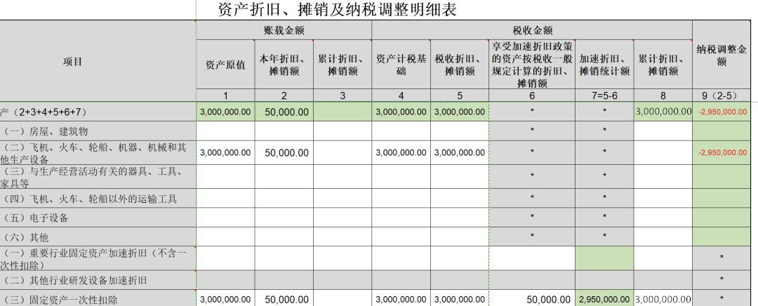 2、第10行“(三)固定资产一次性扣除”