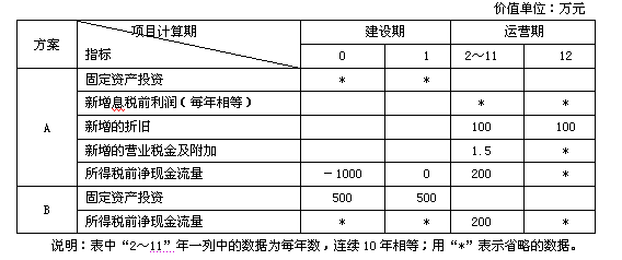 3.已知:某企业拟进行一项单纯固定资产投资,现有A、B两个互斥方案可供选择,相关资料如下表所示: