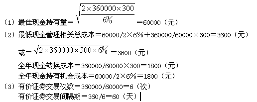 4.已知:某公司现金收支平稳,预计全年(按360天计算)现金需要量为360 000元,现金与有价证券的转换成本为每次300元,有价证券年均报酬率为6%。
