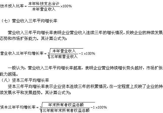 4.企业经营增长指标,包括营业收入增长率、资本保值增值率2个基本指标和营业利润增长率、总资产增长率、技术投入率3个修正指标。