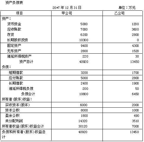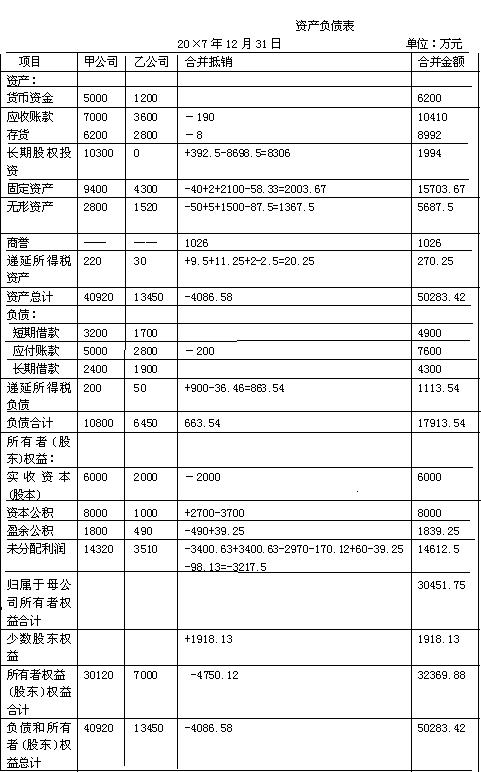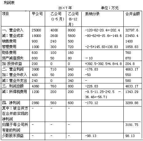 编制甲公司20×7年度的合并资产负债表及合并利润表