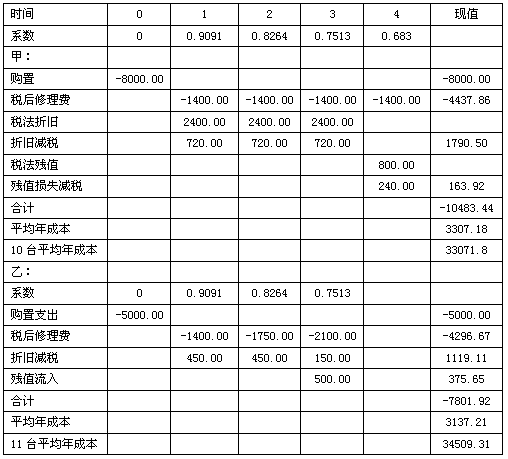 每年税后修理费(4年)=2000×(1-0.3)=1400
